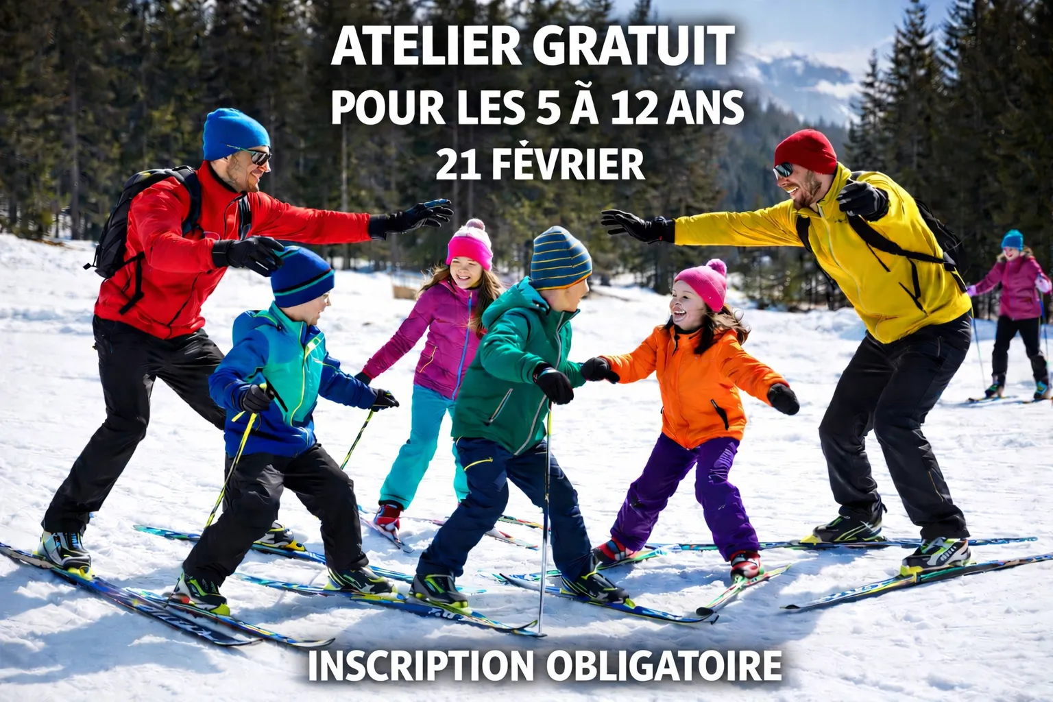 Cours d'initiation au ski de fond par le jeu selon l'âge d’une durée de 1h30, suivi d’un chocolat chaud au chalet. Pour inscription: